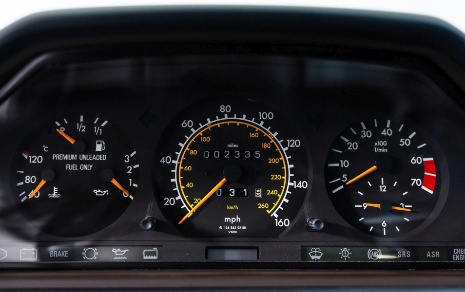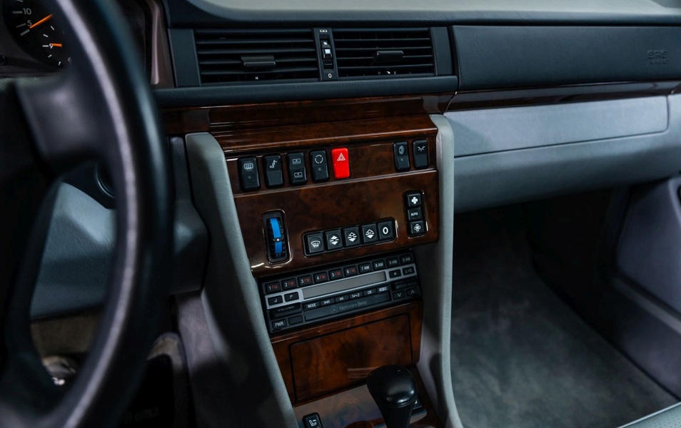 Как видно на фотографиях, несмотря на 34-летний возраст, машина находится в исключительном состоянии. Mercedes 500E в такой идеальной сохранности с таким малым пробегом — большая редкость.